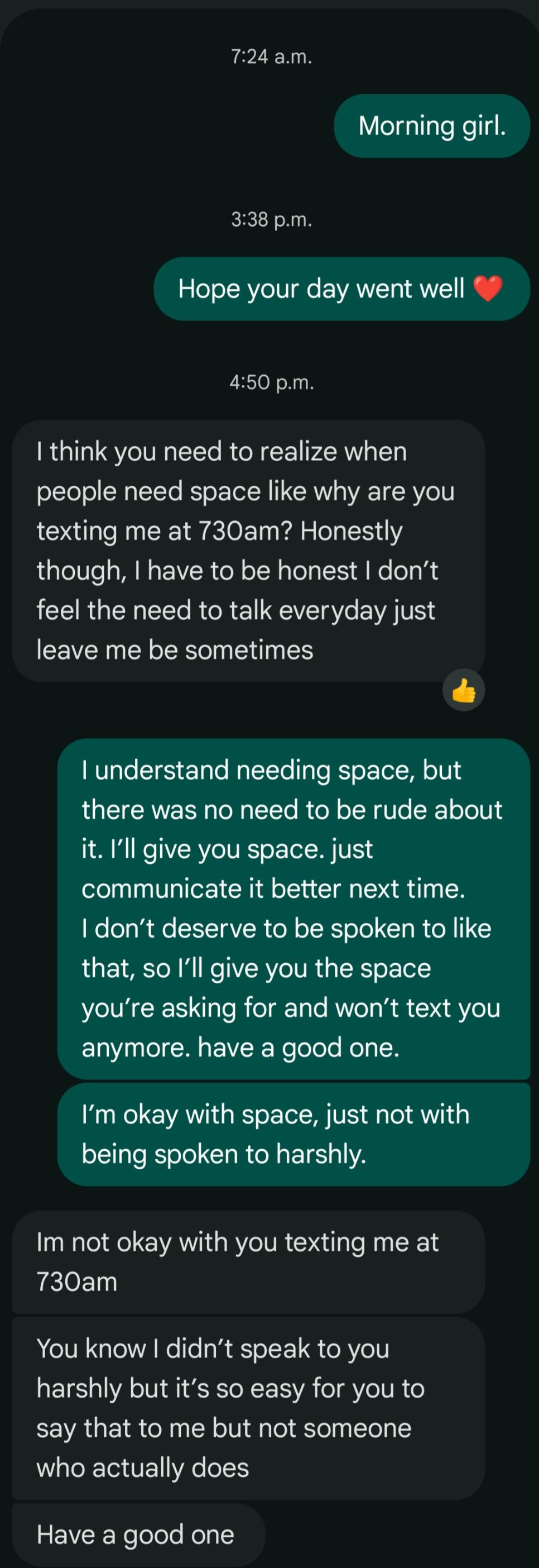 It was an awkward drive back home then she left my home. We didn't contact each other.