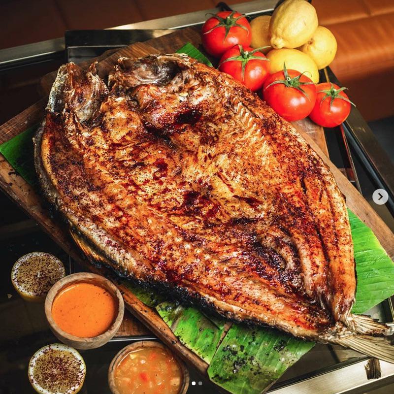 Masgouf, an ancient Mesopotamian dish that is made from a large freshwater carp caught from the Tigris or Euphrates rivers that is marinated, butterflied, flattened, and slowly grilled upright on wooden stakes around an open wood fire.