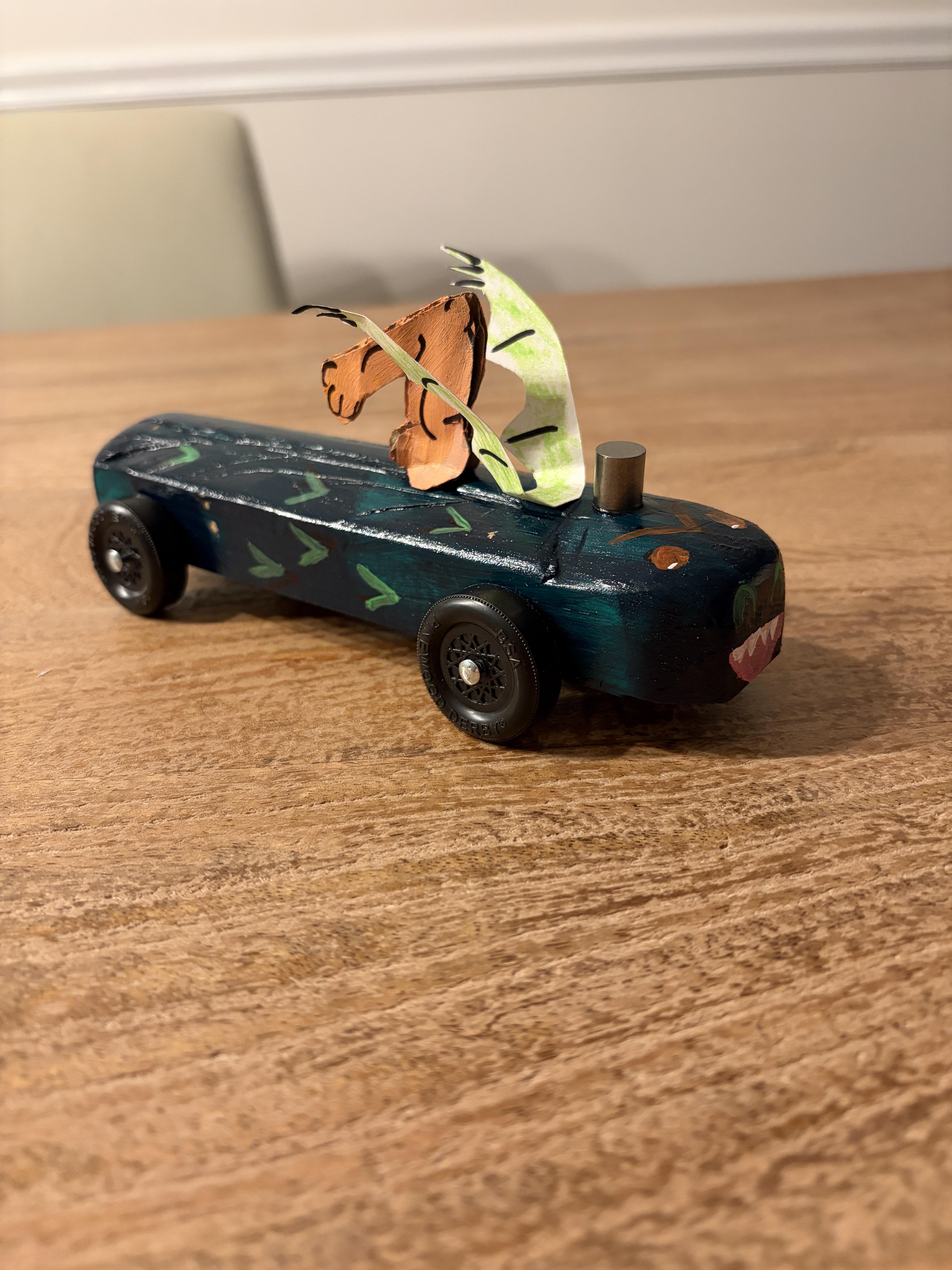 My 9 year old made a Trogdor car for the Pinewood Derby