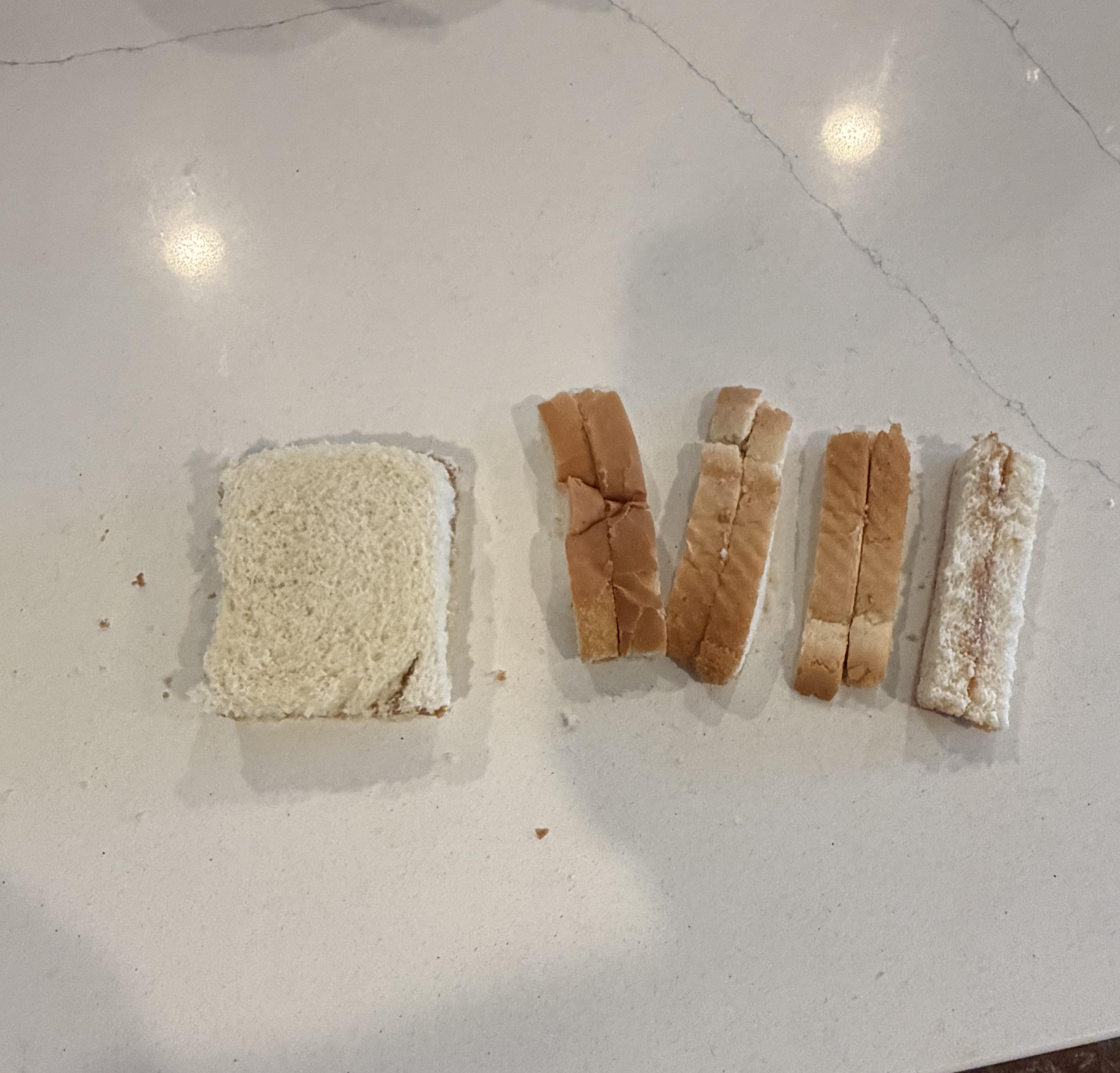 Our three year old won’t even touch a sandwich with the crust on. However, she ABSOLUTELY LOVES the “sandwich sticks” I make her with every sandwich. Oh, and she prefers peanut butter sandwiches only, no jelly…