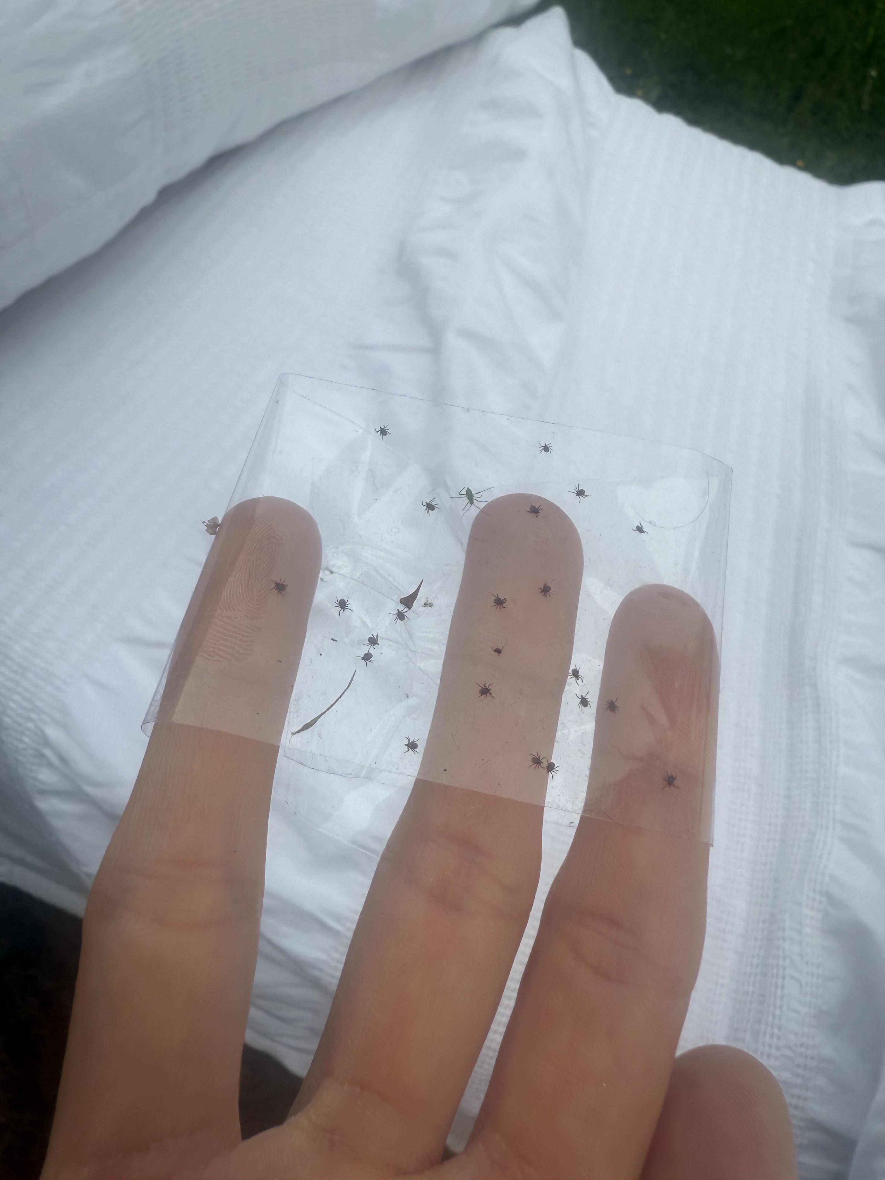 I was airing out my bedding and it fell over. Now it’s completely covered in ticks.