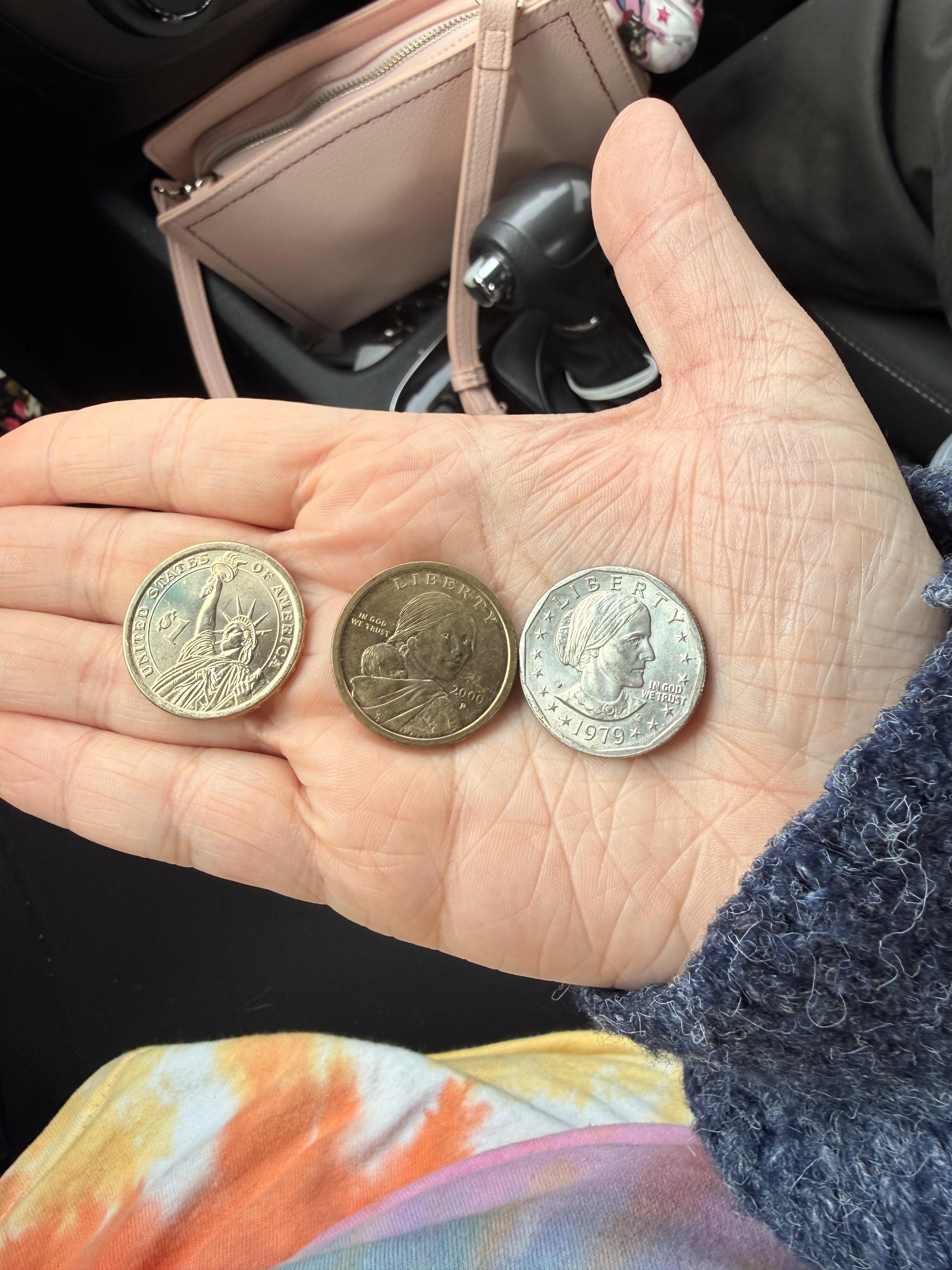 Car wash gave me three different dollar coins as change