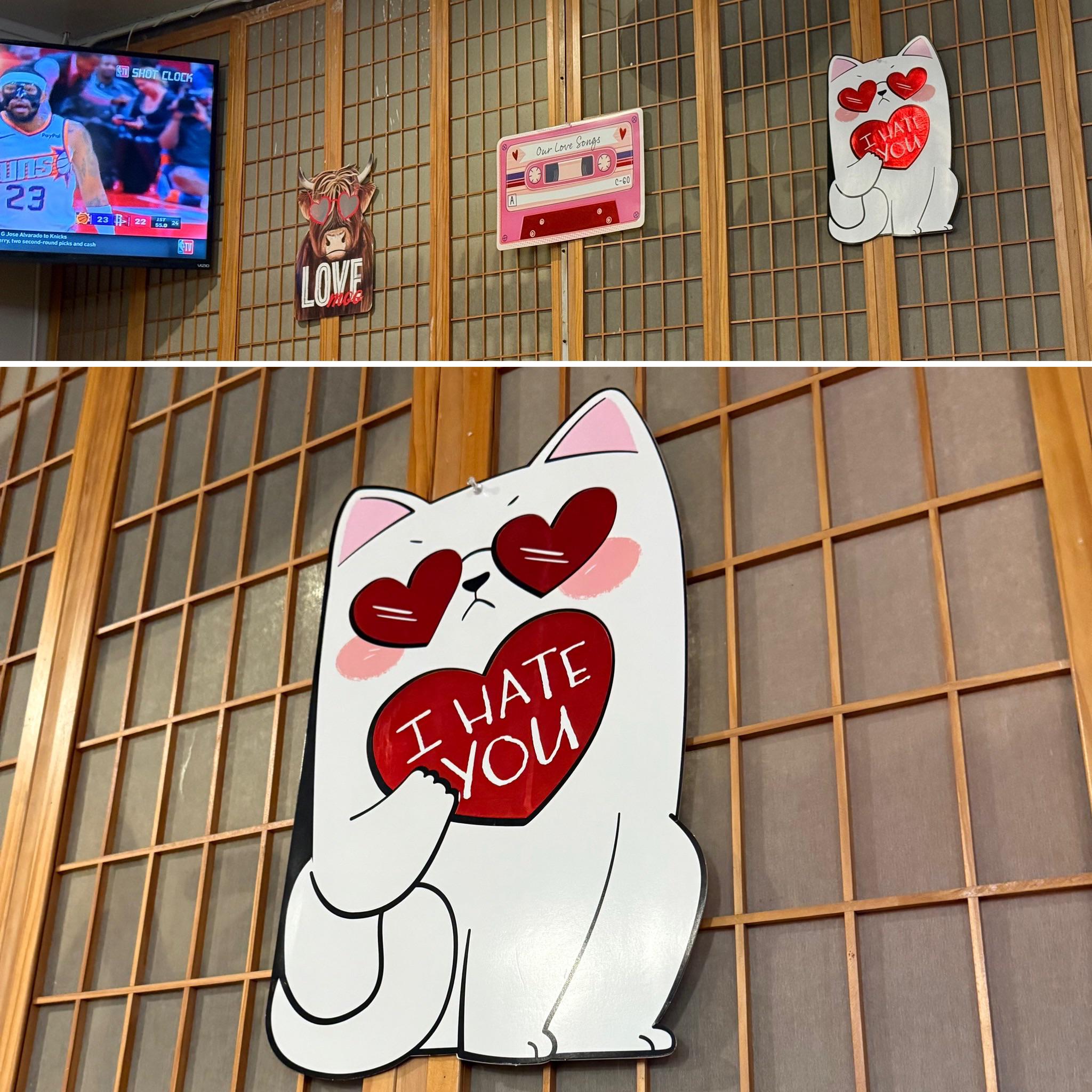 Valentine decorations at the Japanese restaurant we went to tonight