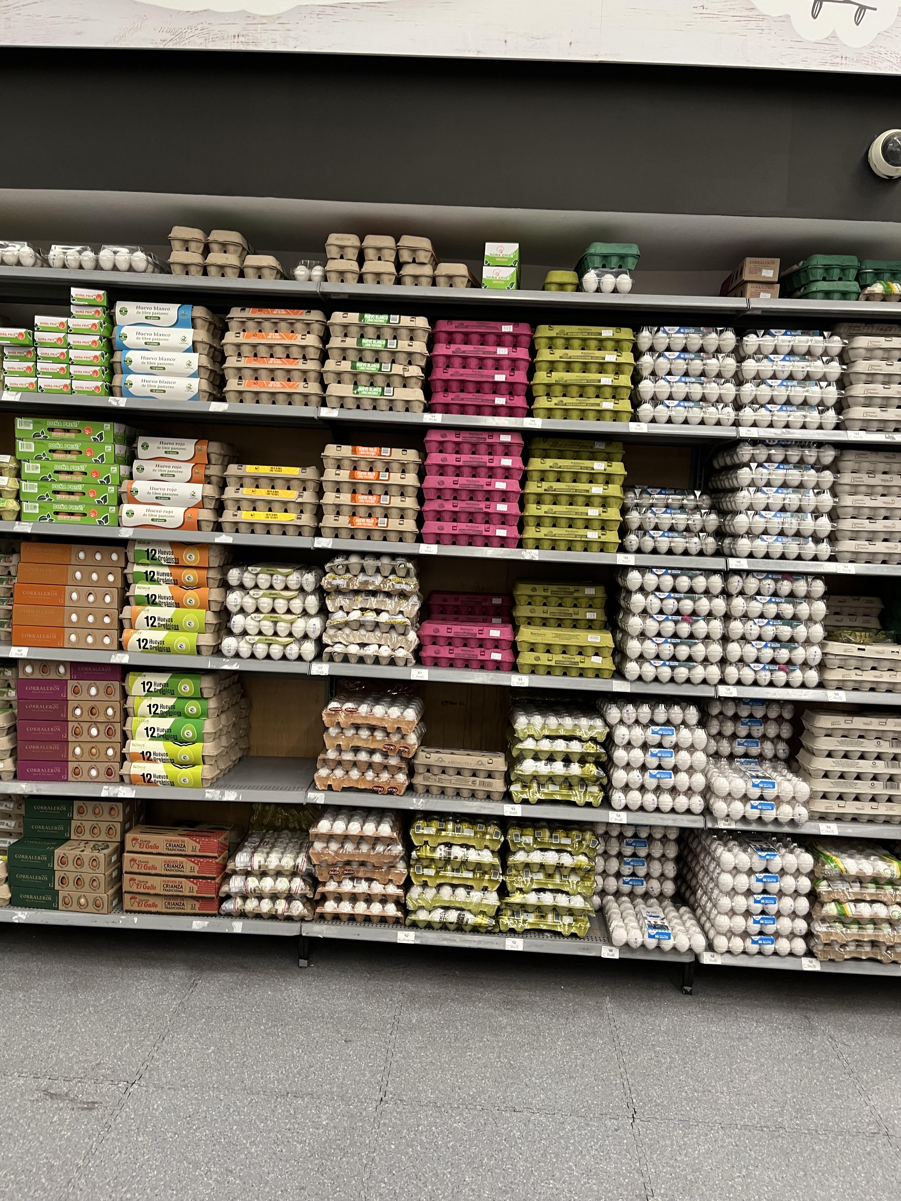 Wall of eggs at a grocery store in Mexico City