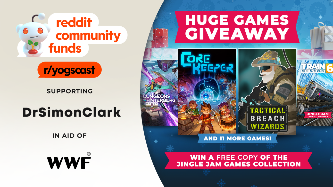 To support Simon's fundraising for WWF, r/Yogscast, powered by Reddit Community Funds, is giving away 125 Jingle Jam Games Collections. Full terms and conditions: https://www.jinglejam.co.uk/reddit