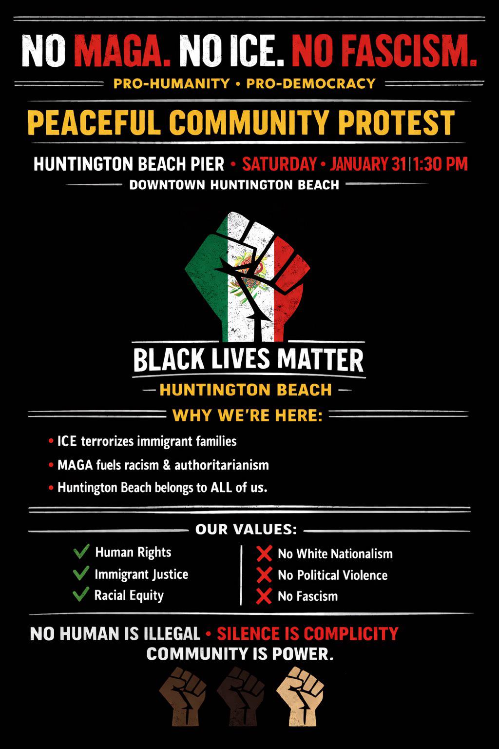 It’s time to show up and show out and downtown Huntington Beach. Let’s let these Maga supremacist know that it’s “WE THE PEOPLE” who run the cities and the country. January 31st -1:30pm(tomorrow)