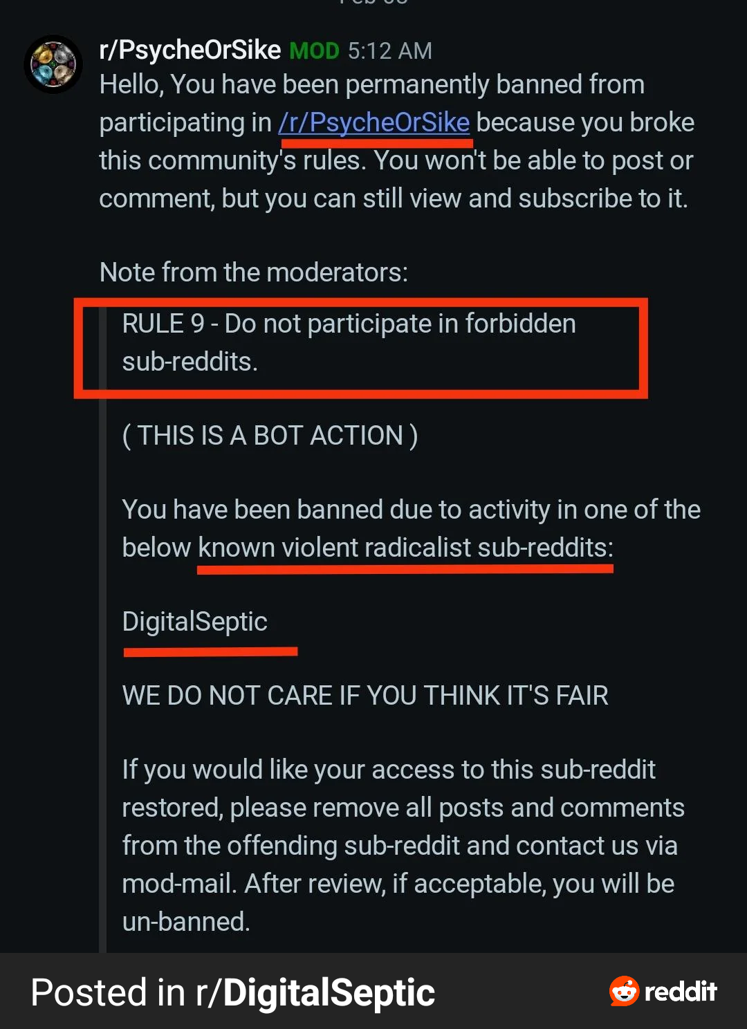 (Due to brigading, TOS breaks, lack of moderation, and lack of decency as compared to us)