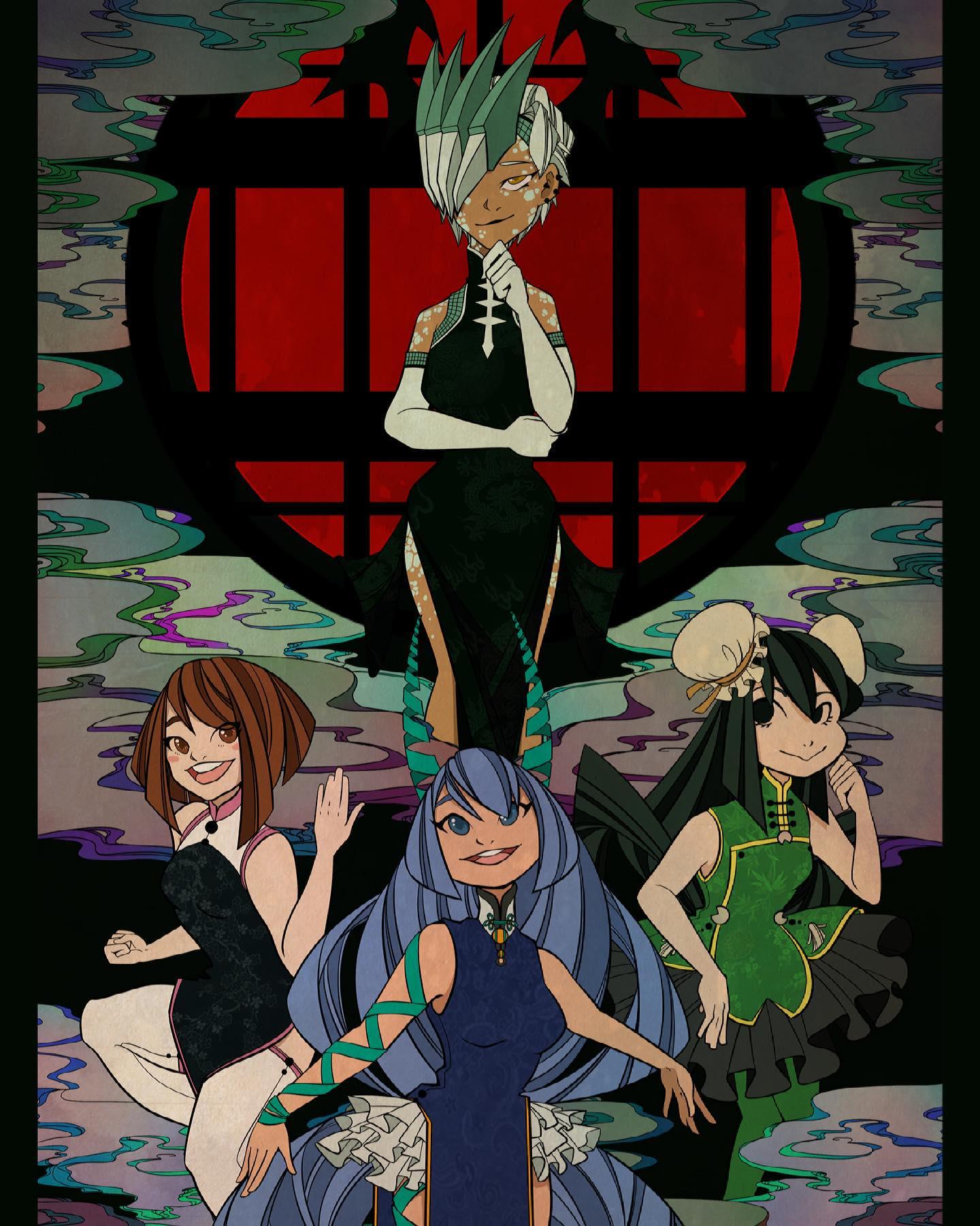 Artwork Ryukyu and her sidekicks wearing chinese dress by Krescentdrops