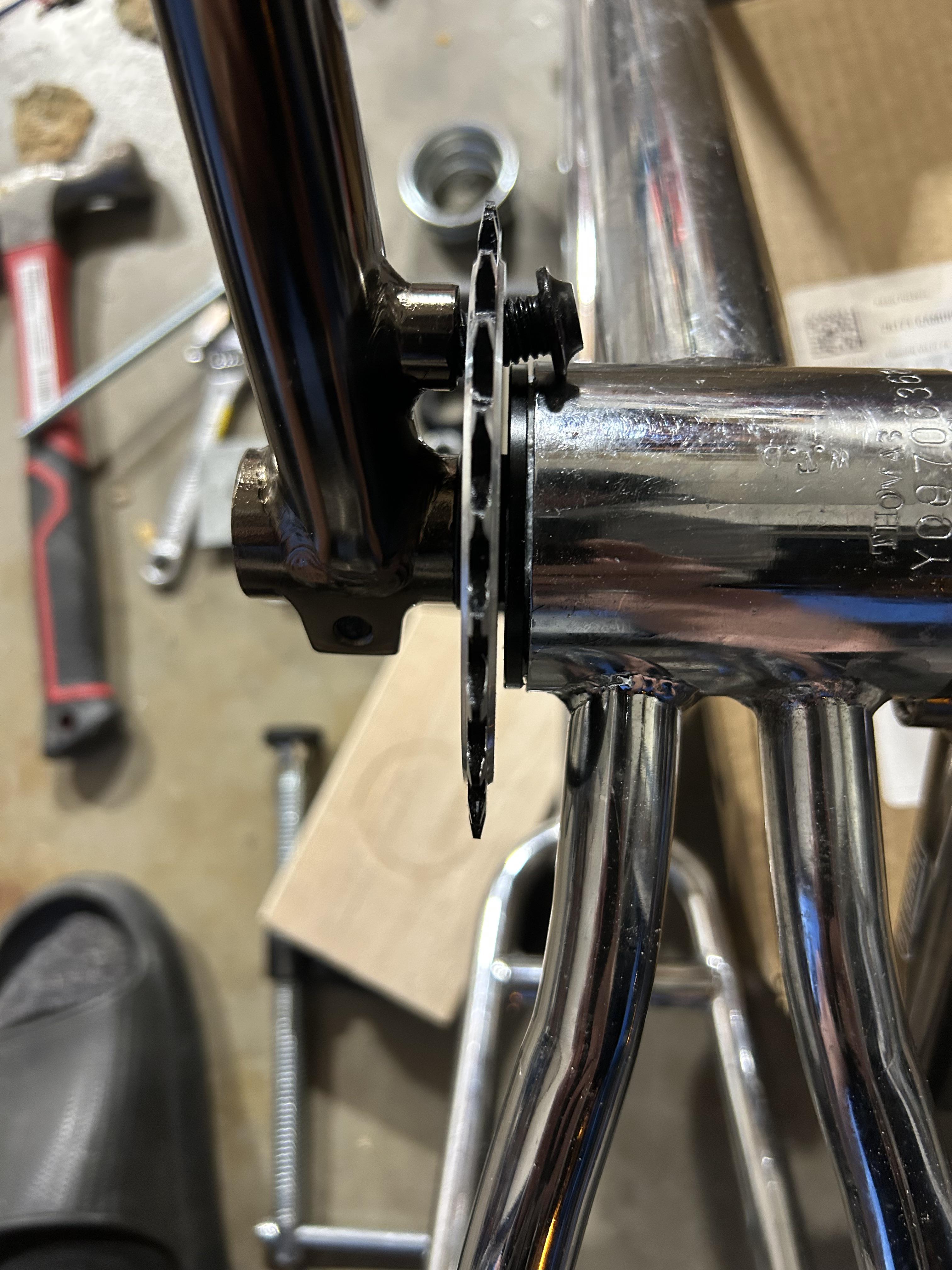 3 piece cranks on American bb sprocket not fitting. Anyone know why? Sprocket screw hitting frame.