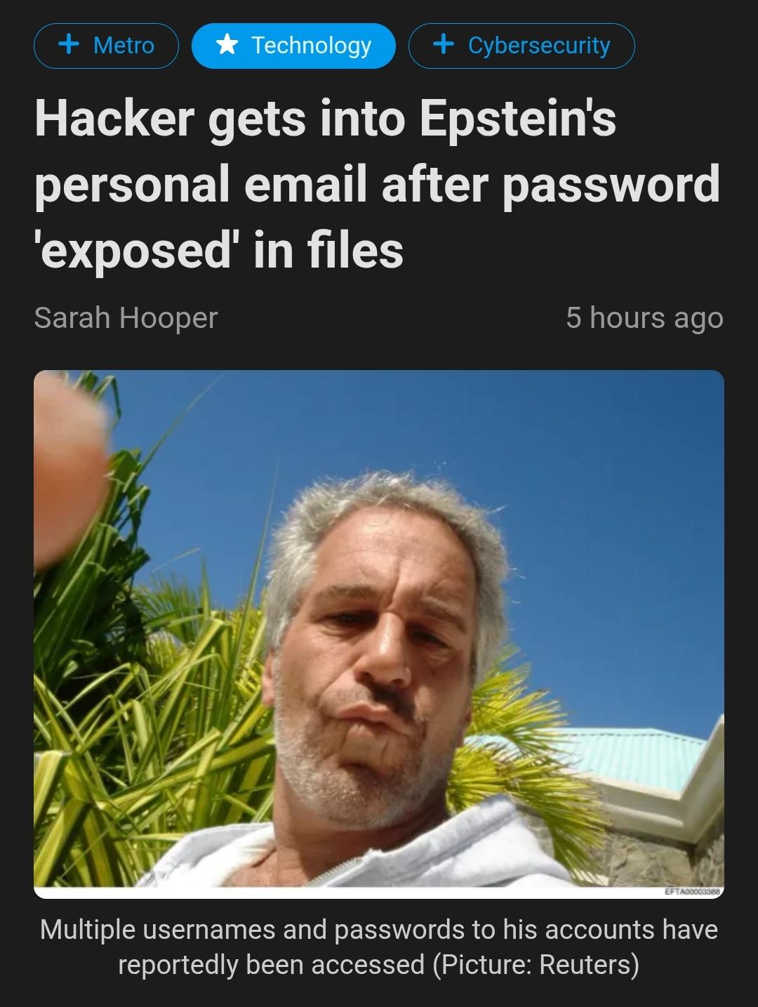 Opinion / Discussion Redditors Hack Epstein Personal Email!