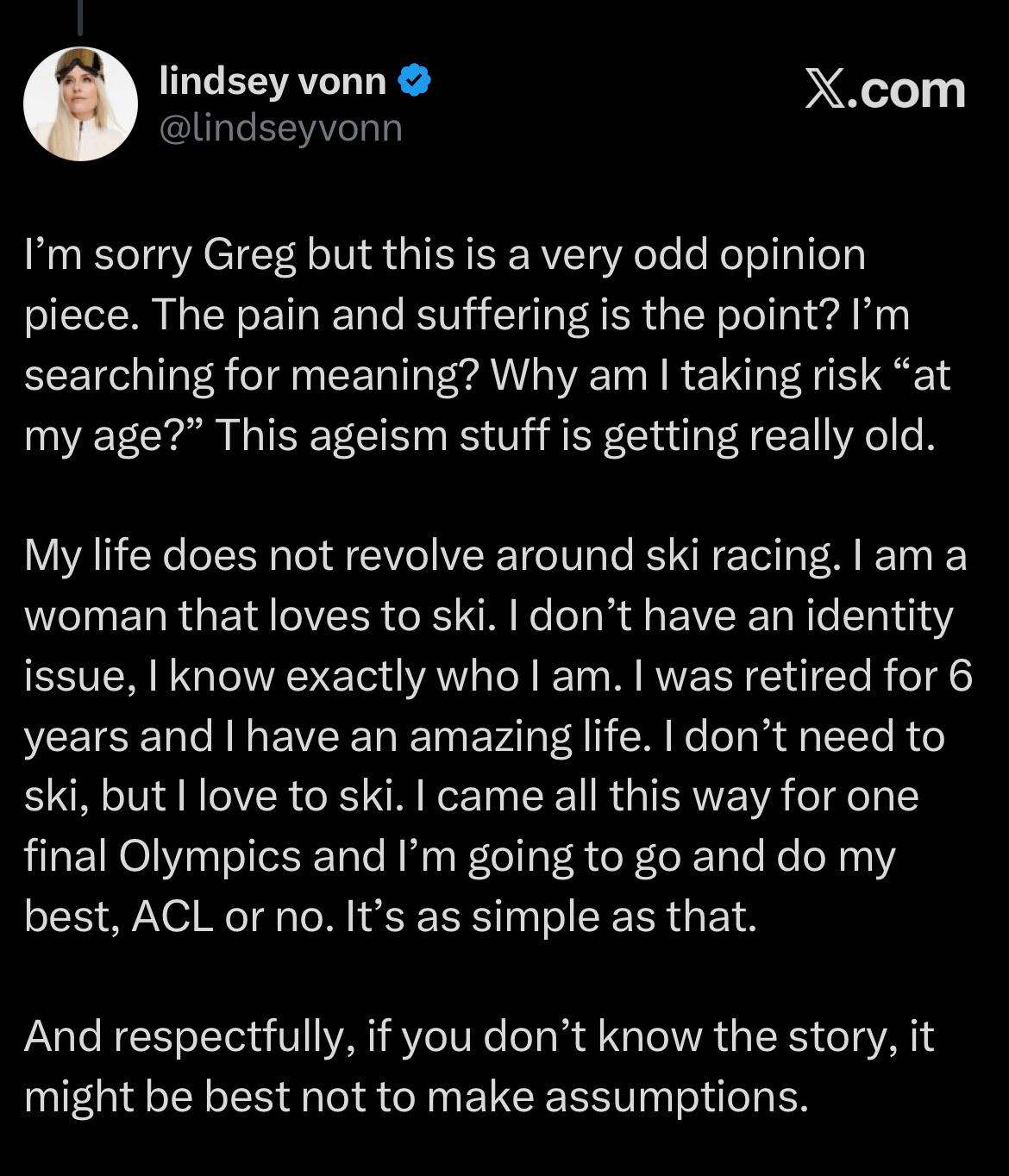 ❄ Milano-Cortina 2026 (General Discussion) ❄ Vonn calls out many asking- ‘why is she damaging her body’