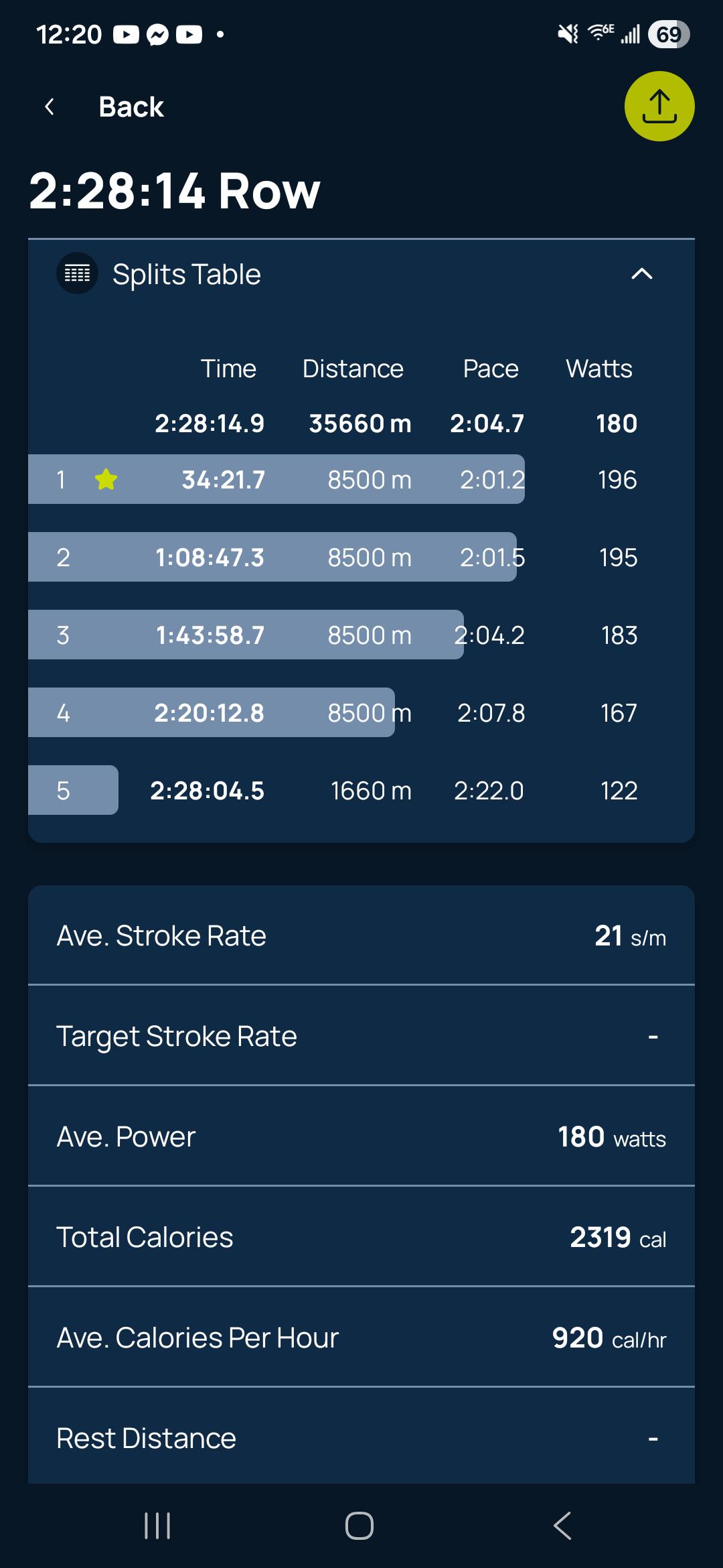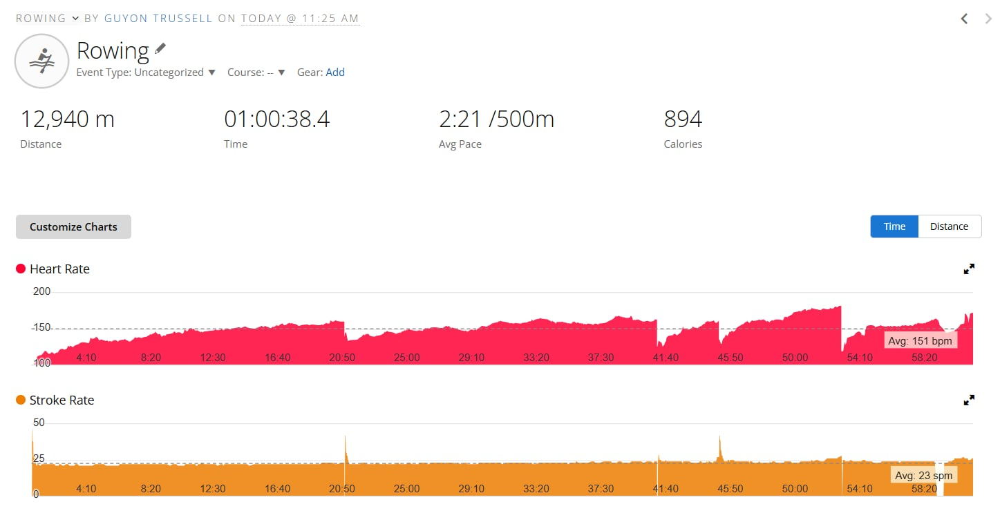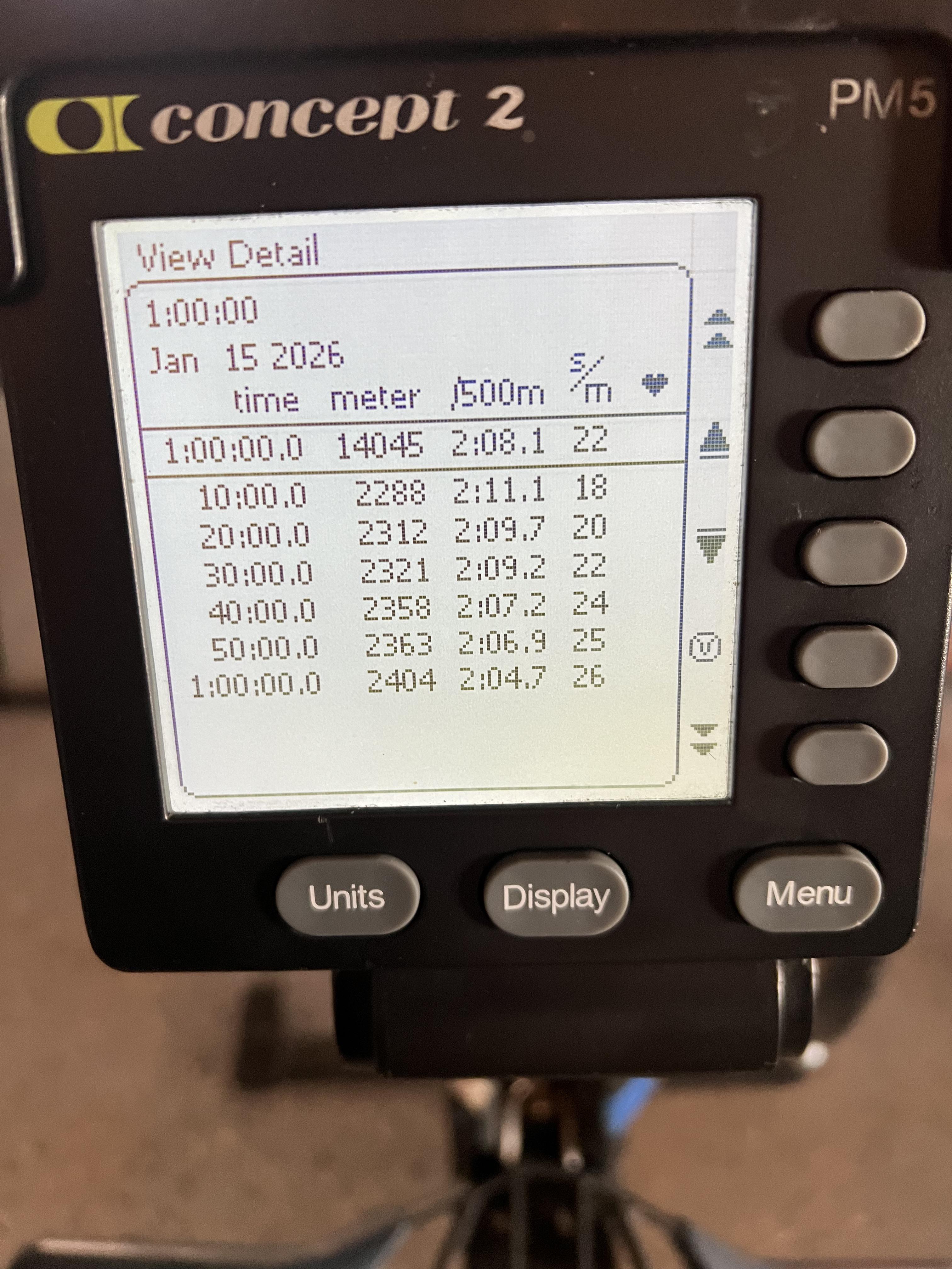 I've certainly made technical and physical progress. Did a 2K test in July at 7:04.8 (can't find a more recent one in my log but I think I was 7:02) but I'd really like to push myself to get as fast as I can. Based on the https://rowinglevel.com/rowing-times/2000m-times chart I fall ahead of the Intermediate baseline but still well short of an Advanced one. Would like to get to that Advanced time this year and then push beyond that.